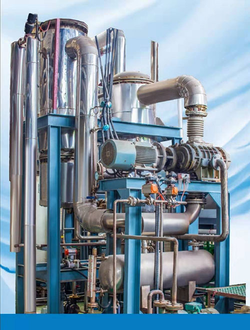 核心设备简介INTRODUCTION TO CORE EQUIPMENT低温蒸发设备:负压低温条件下,利用膜式热交换原理蒸发水份,蒸发出来的水蒸气作为热源循环使用,确保在高效、低运行成本下稳定运行。本工艺使用范围APPLICATION SC...
